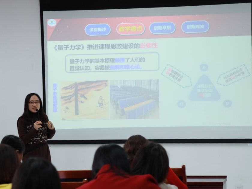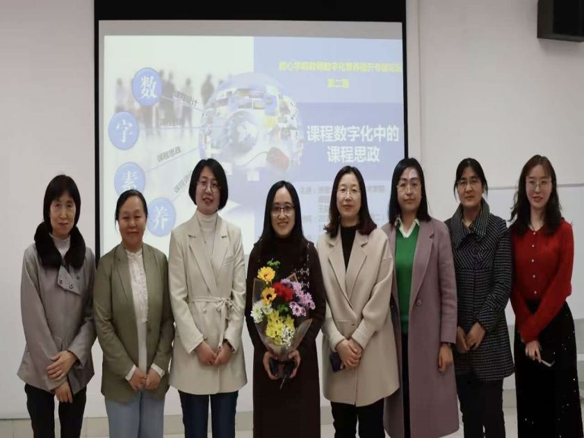 为研究如何将课程思政有机融入课程数字化,提升教师数字文化素养和教学质量,扎实推进国家教育数字化战略行动,同时依托市校融合发展战略工程项目,3 月 19 日,电竞比分网 在特教楼 302 室举办了第二期教师数字化素养提升专题论坛。济南大学物理与技术学院课程思政教学名师王静副教授进行了“课程数字化中的课程思政”专题分享,学院多名教师参加。