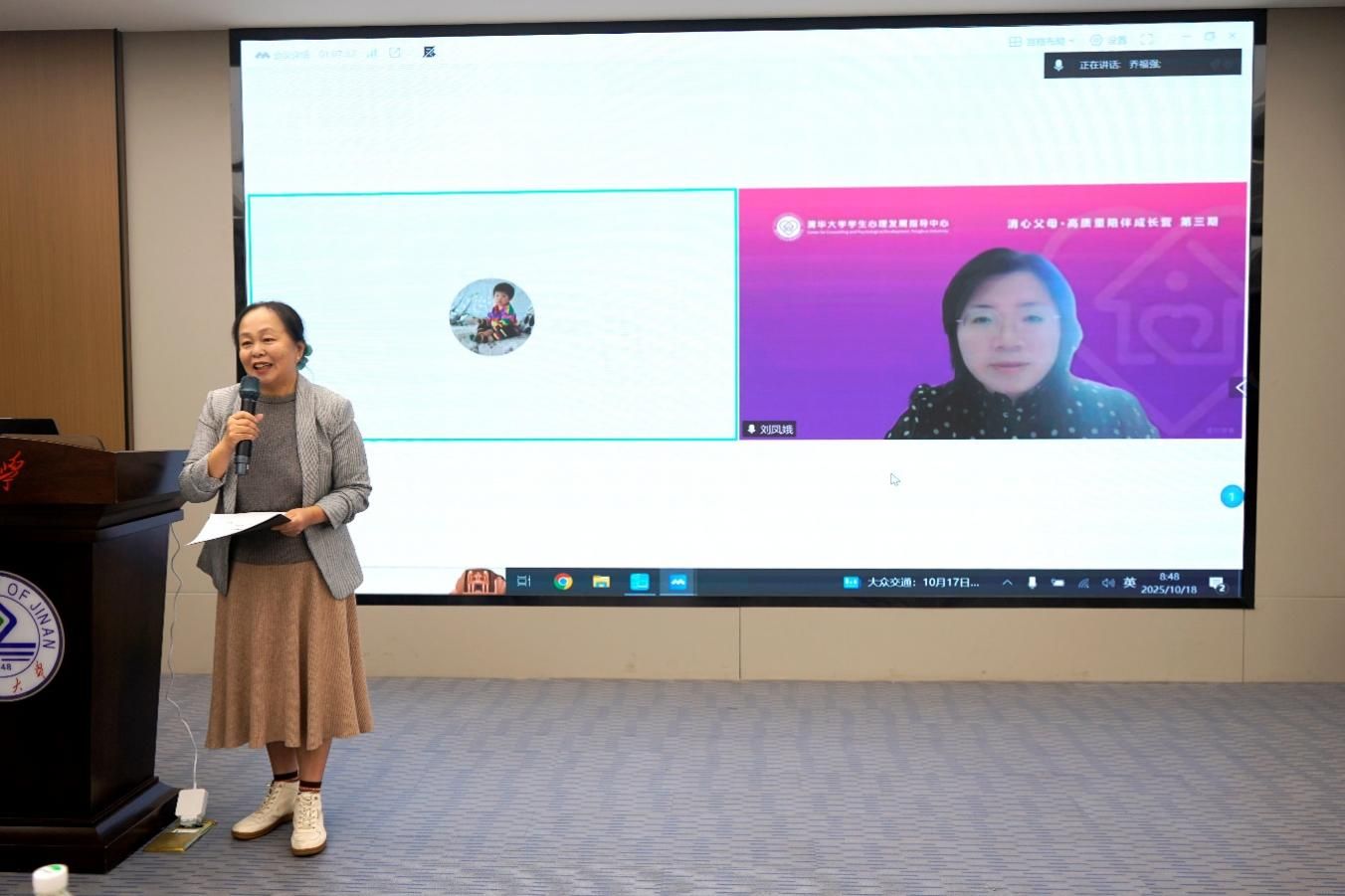 朱波为活动致欢迎词,肯定了论坛在推动青少年心理健康教育领域的积极意义。陈功香理事长围绕济南心理学会2025年度工作开展情况进行总结,并对2026年度工作计划作出部署。论坛以“挑战与成长:当代青少年心理问题的新特征和新对策”为核心主题,特邀多位行业专家带来高水平学术报告。清华大学刘凤娥教授、齐鲁医院杨乐金主任、济南幼儿师专逄霞教授、济南电视台节目主持人李冠洋、济南市教育教学研究院教研员石建军、历下区教研员马莉等嘉宾,分别聚焦家庭系统与个体心理健康疗愈路径、青少年常见情绪障碍诊断与处理、系统式家庭治疗对家庭教育的启示、厌拒学“四视角模型”的精准干预应用等关键议题,分享前沿理念与实践经验。