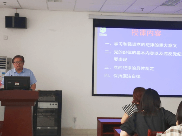 本次党课,季竹君从学习和强调党的纪律的重大意义、党的纪律的基本内容以及违反党纪的主要表现、党的纪律的具体规定、如何保持廉洁自律四个方面全方位讲解了保持党的先进性和纯洁性的有效做法。通过对违法违纪的典型案例的深刻剖析阐明了廉政在党的发展历程中发挥的重要作用,进一步明确了“清清白白做人,干干净净做事”的为政理念。他强调,党员干部应加强学习,认真掌握党纪基本知识;提高认识,增强维护党纪的自觉性;严守党纪,争取成为合格共产党员。每一名党员要做到秉公用权、为政清廉,养一身浩然正气,修一颗赤子之心,永葆共产党人清正廉洁的政治本色,弘扬党的清风正气。季竹君从牢记党员义务、增强党性修养,不断坚持学习、争做优秀毕业生,珍惜校园生活、做文明离校表率等方面对毕业生党员提出了要求。最后,全体毕业生党员面向鲜红的党旗,重温入党誓词,以铮铮誓言宣示对党忠诚的决心和为民服务的初心。