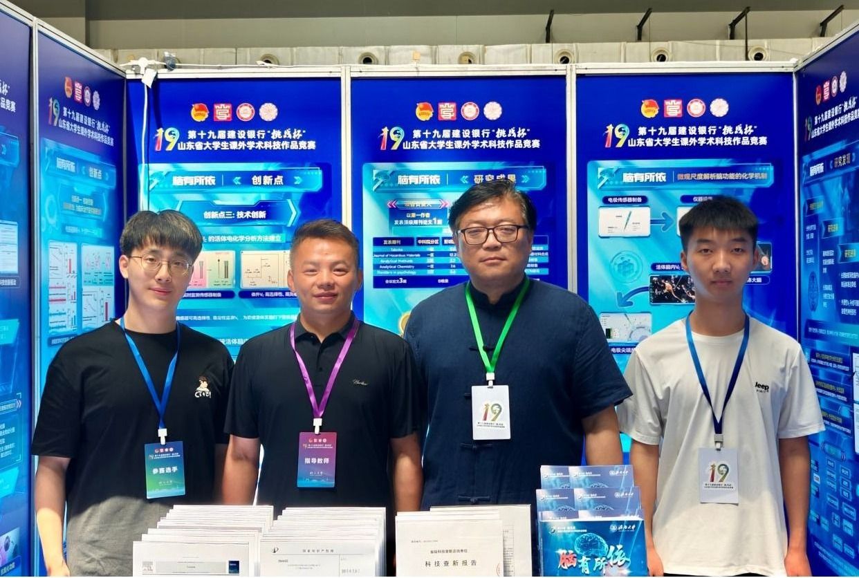 《脑有所依—基于活体传感的脑内维生素C精准监测及其在缺氧性神经损伤中的机制研究》荣获特等奖,该作品由纪文亮、李丽、刘晓彤老师指导,亓子扬、王文谦、谷尚聪、马源、王林胜、王文馨、甘思宇、贺光越同学完成。本项目聚焦缺氧性神经损伤中脑内维生素C动态监测及机制研究,基于碳纳米管修饰微电极开发高灵敏活体传感方法,实现清醒动物脑内维生素C实时精准检测;为揭示缺氧性神经损伤分子机制、开发神经保护策略提供实验依据,助力脑疾病诊疗及抗氧化系统平衡研究。团队成员以第一作者发表学术论文6篇,申请专利6项,获国家级奖项13项。