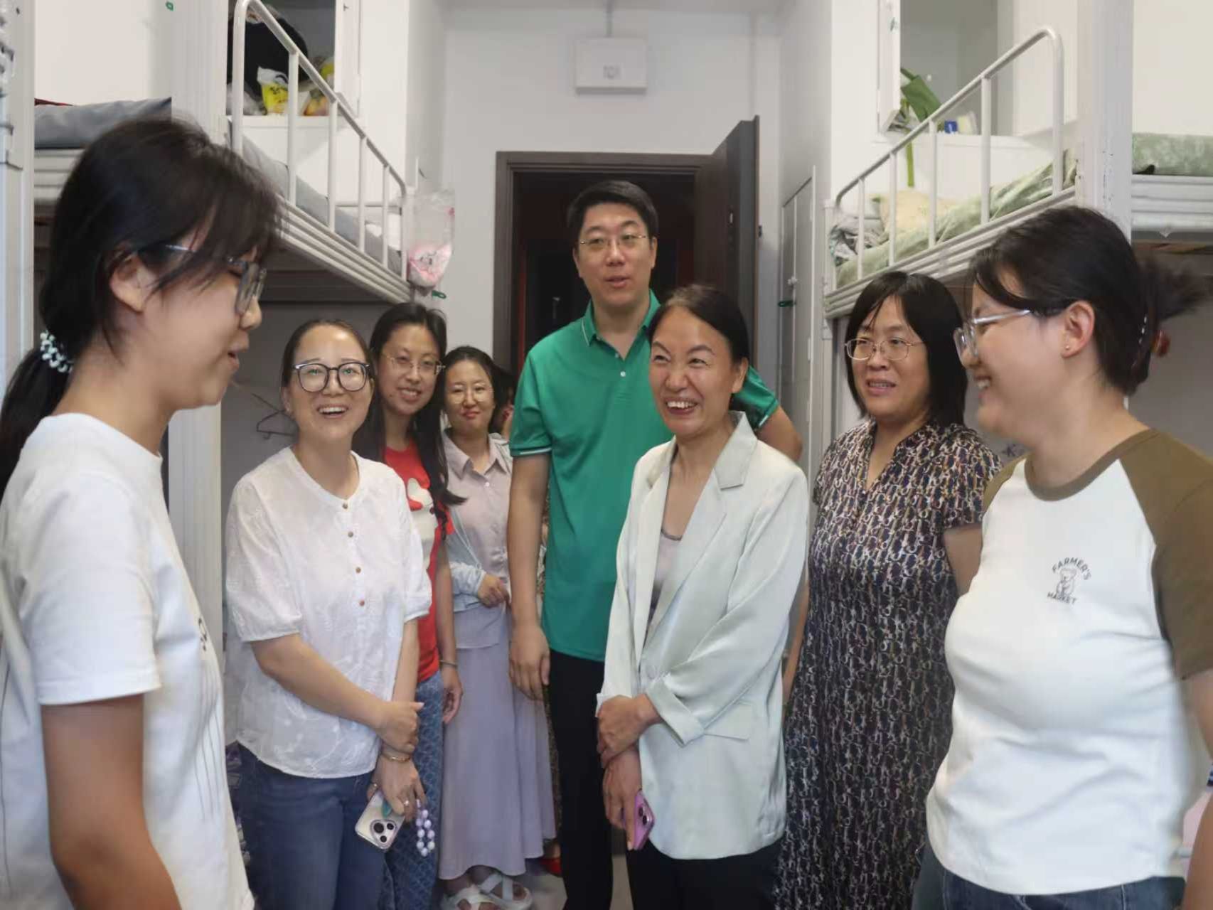 下午,学院领导带队开展走访慰问活动,学院党委书记卢琦、院长陈功香分别询问新生住宿情况与学业规划困惑,并针对新生问题一一详细解答,她们也向新生们寄予深切厚望,勉励大家尽快融入大学环境,在接下来的校园生活中积极探索自我、勇于尝试,用奋斗为大学生涯绘就一幅独特而亮丽的画卷 。