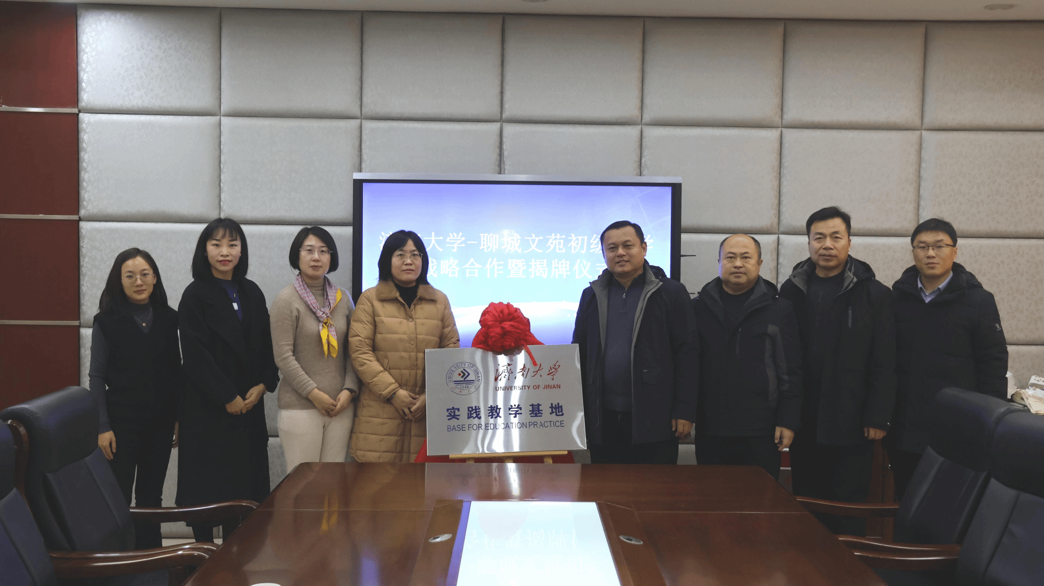 一行的到来表示热烈欢迎,详细介绍了学校的建校历程、师资队伍和硬件条件,并期待双方的合作能够取得丰硕成果。随后,陈功香院长致辞,表达了对聊城文苑初级中学的感谢,介绍了学院的发展历程、专业特色、师资队伍和学生培养目标,强调了实践教学的重要性,表示学院将积极推动双方合作的深入开展。之后,双方签署合作协议,为实践教育基地揭牌,并就如何进一步深化合作、推动实践教学基地的发展等问题进行了深入的探讨和交流。