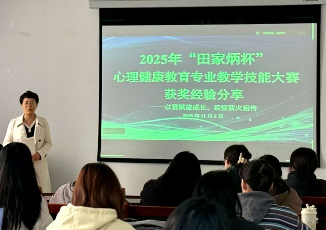 2023级研究生马清泽、赵永鑫荣获全国二等奖,车炳莹、郭迎澳荣获全国三等奖。为充分发挥竞赛育人功效,切实落实“以赛促学、以赛促教、以赛促改”理念,帮助同学们积累教学技能大赛备赛、参赛经验,提升专业教学实践能力,11月6日,学院组织了“以赛赋能成长,经验薪火相传”为主题的“田家炳杯”大赛获奖经验分享交流会。2023级、2024级、2025级全日制心理健康教育专业研究生参加。