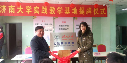 乔福强主任与唐伟众院长签订济南大学本科教学科研实践基地合作协议书;由胡金萍老师向唐伟众院长进行授牌。