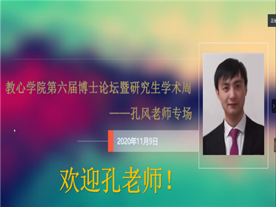 成功举办第六届博士论坛暨研究生学术周第一期论坛,本次论坛邀请陕西师范大学心理学院副教授、硕士生导师孔风做线上科研经验分享,由副院长陈功香教授与王树青教授共同主持,学院20级全体研究生及部分教师参加了此次论坛。