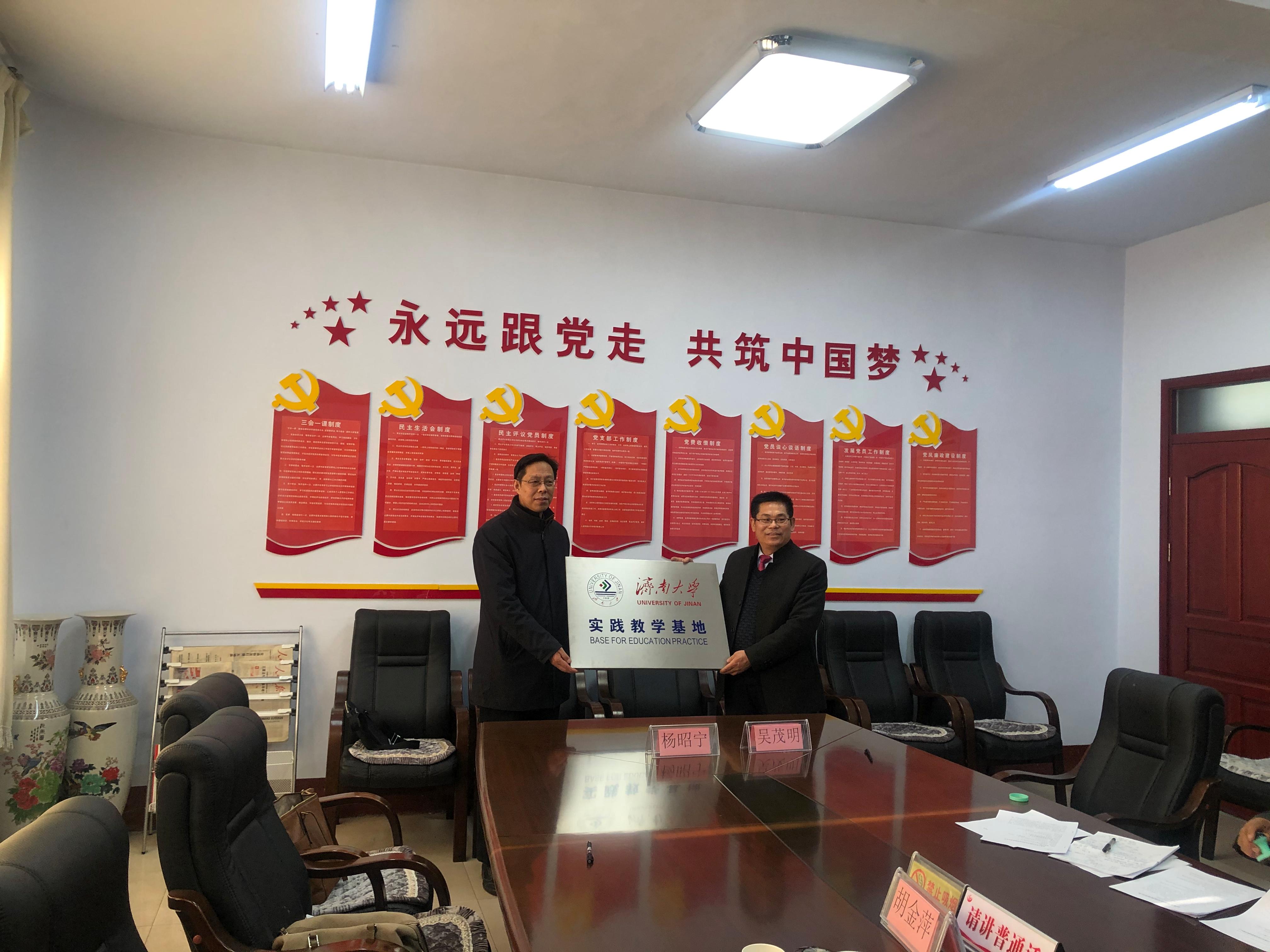 吴茂明校长与李开云副院长签署实践教学基地与学生社会实践基地协议,与杨昭宁院长为基地揭牌。
