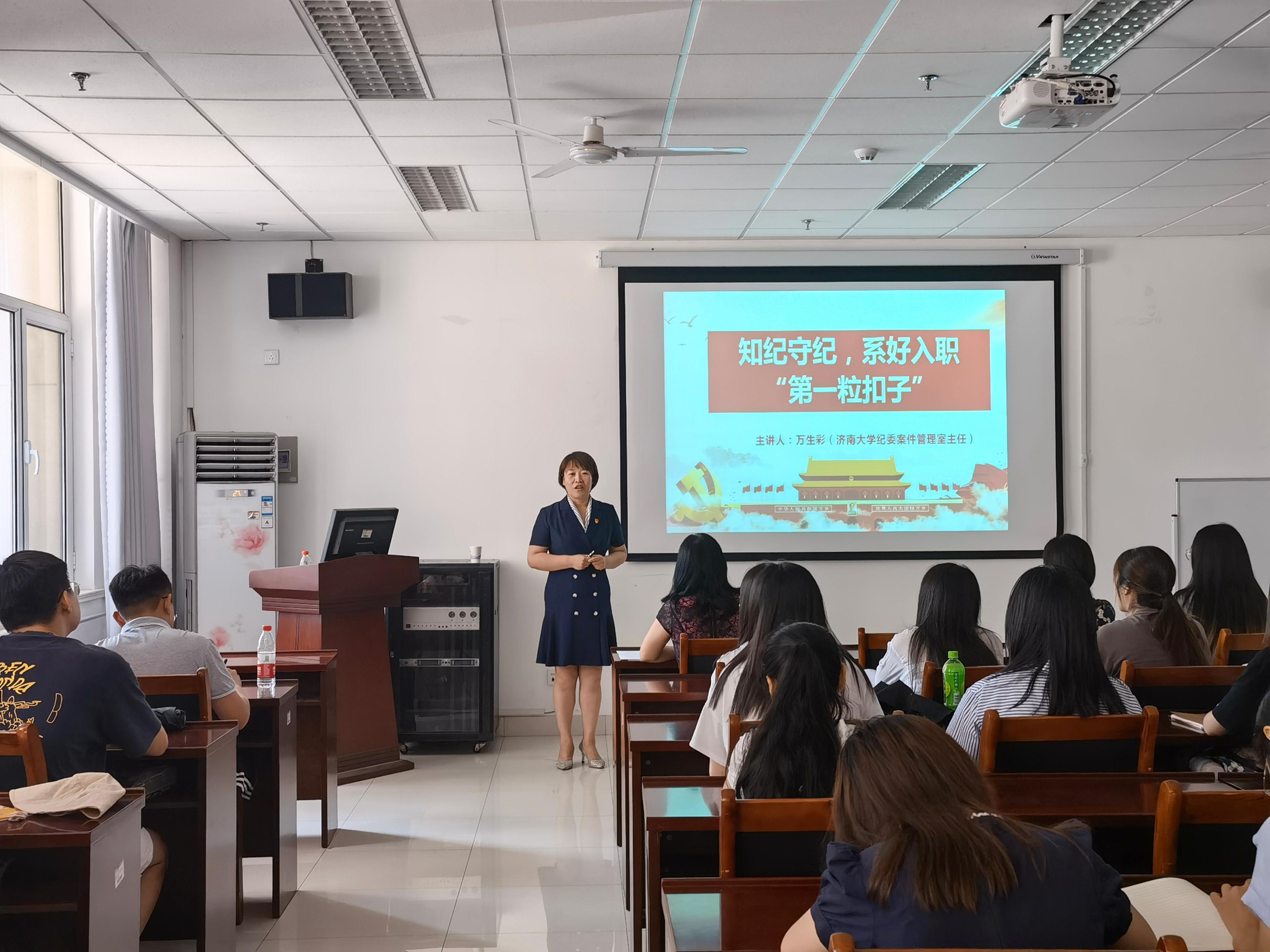 为进一步推进党史学习教育走深走实,引导毕业生党员系好“入职第一粒扣子”,6月22日上午,济南大学纪委案件管理室主任万生彩给全体毕业生党员做了廉政教育专题报告,报告由学院党委副书记、副院长卢琦主持。
