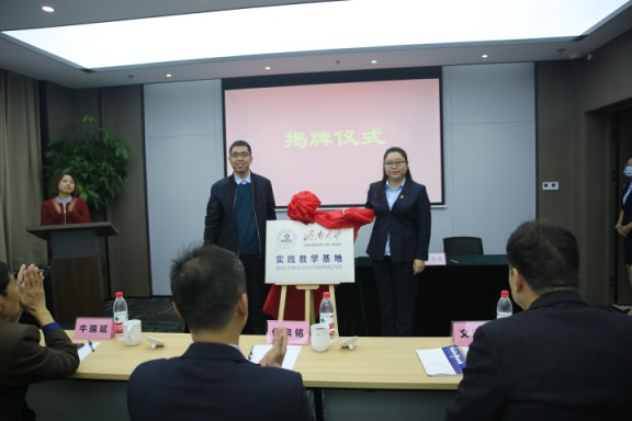 仪式上,陈功香和魏玲玲签署了共建协议,济南市中城市投资集团党委委员、副总经理贾婷、济南大学教务处赵德刚副处长为济南大学实践教学基地揭牌。