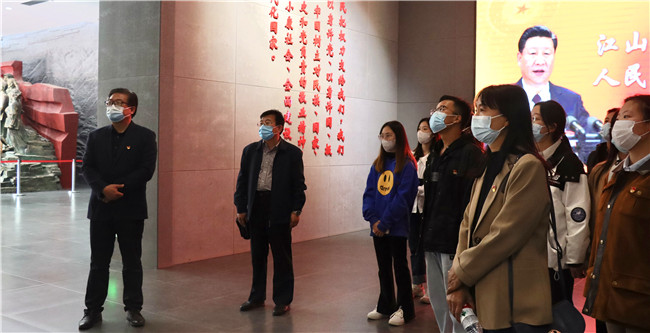 大峰山革命根据地是抗日战争、解放战争的坚强战斗堡垒,是山东联系延安秘密交通线上的重要中转站,是培养党政军干部的红色摇篮,在讲解员的带领下,大家参观了大峰山革命根据地纪念馆、长清县委办公旧址,一件件革命实物,一张张鲜活的图片,带大家回顾革命历史,追忆红色精神;在初心广场,大家高举右手,重温入党誓词,面对鲜红的党旗,再次庄严宣誓,表达了对党的无限忠诚和坚定信念。
