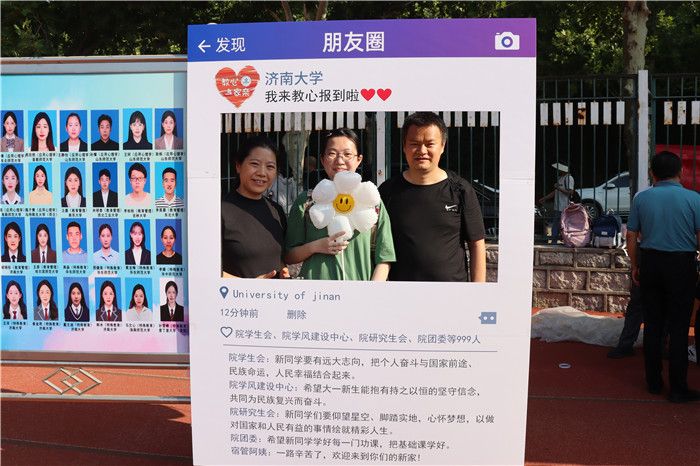 在迎新现场,学院领导、辅导员和新生班主任与新生及家长亲切交谈。“打卡朋友圈”相框下拍照留念,为新生记录入学美好瞬间;在悬挂了校友和 学长学姐发来新生寄语的“心愿墙”上,新生可以展示自己对未来的美好期待。班助和志愿者引导新生核验信息,快速办理入学手续,领取新生大礼包,并配合为 新生答疑解惑。志愿者在帮助搬运行李的同时,着重介绍校园美景美食,帮助新生快速了解和更好融入济大校园生活。
