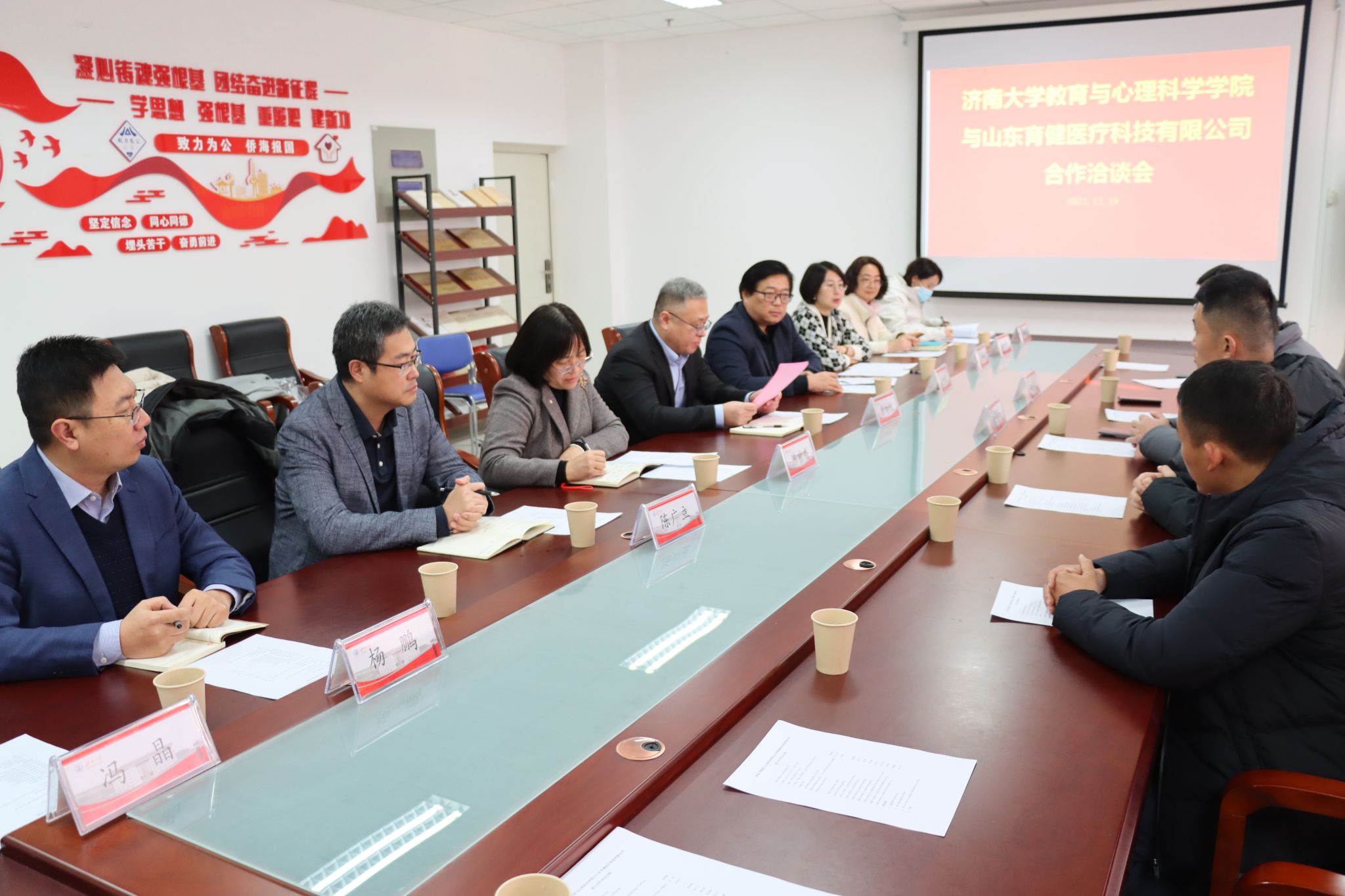 与山东育健医疗科技有限公司联合成立青少年心理发展与教育研究院及捐设备赠仪式在特教大楼513会议室举行,山东山东育健医疗科技有限公司总经理邹雪茜,我校优秀校友、青岛市临沂商会名誉会长杜华民,学校党委常委、副校长黄加栋出席仪式。合作发展处相关负责人、电竞比分网