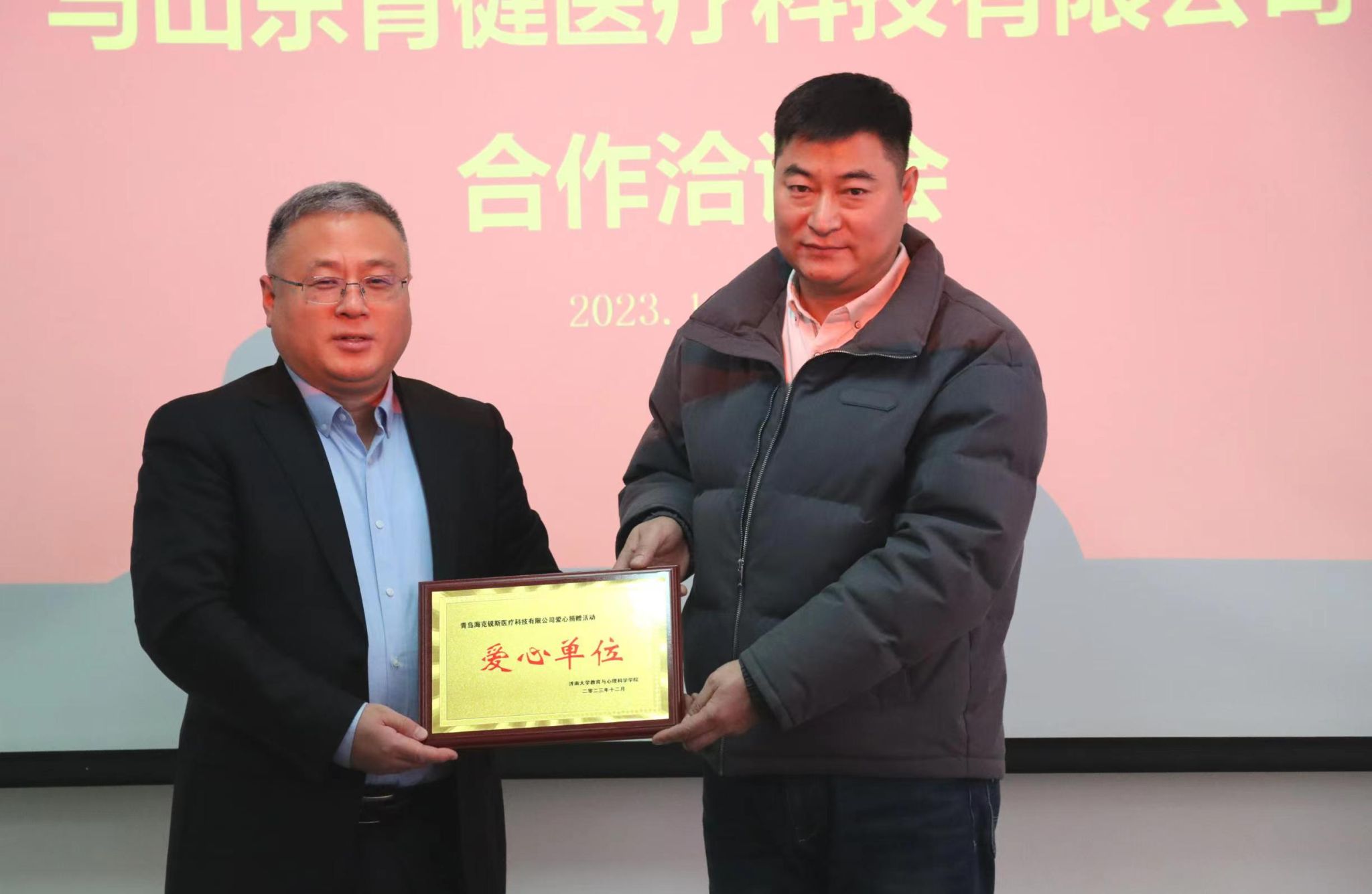 黄加栋对总经理邹雪茜和杜华民一行表示欢迎,感谢山东育健医疗科技有限公司的爱心善举,期待电竞比分网