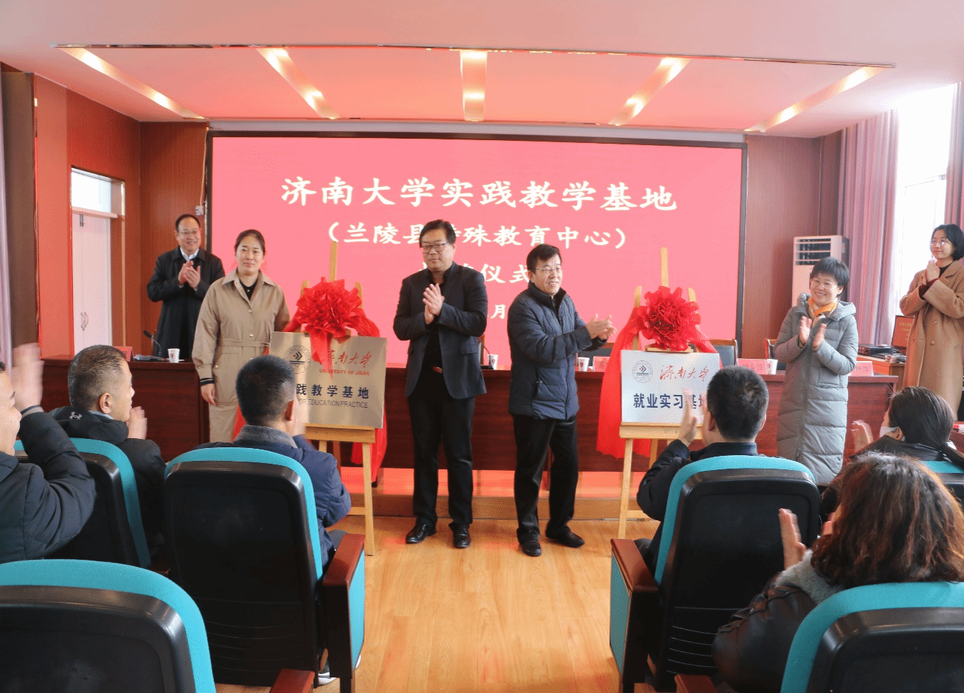 兰陵县委常委、宣传部部长、统战部部长、教育工委书记,县政协党组副书记苏妮娜致辞。她指出,济南大学实践教学基地和就业实习基地落户兰陵,是高等教育和特殊教育的密切融合,符合国家教育改革发展大势。我们将为实践教学基地和就业实习基地创造良好的环境,指派教学经验丰富的教师指导实习。同时,期待今后双方能进一步拓展合作的空间,在教学科研、教师专业发展等方面进行深入交流,实现联合培师育人的目的。