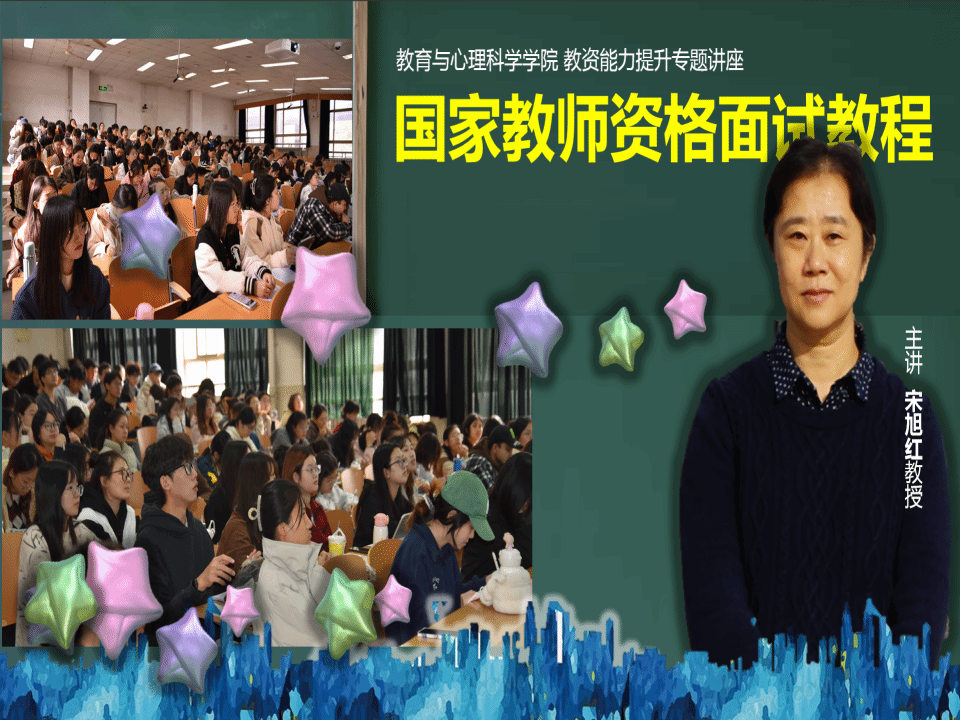 心理系邀请宋旭红教授在11J3201举办“国家教师资格面试流程”——教资能力提升专题讲座。讲座由心理系系主任冯晶主持,应用心理学专业各年级学生参加。