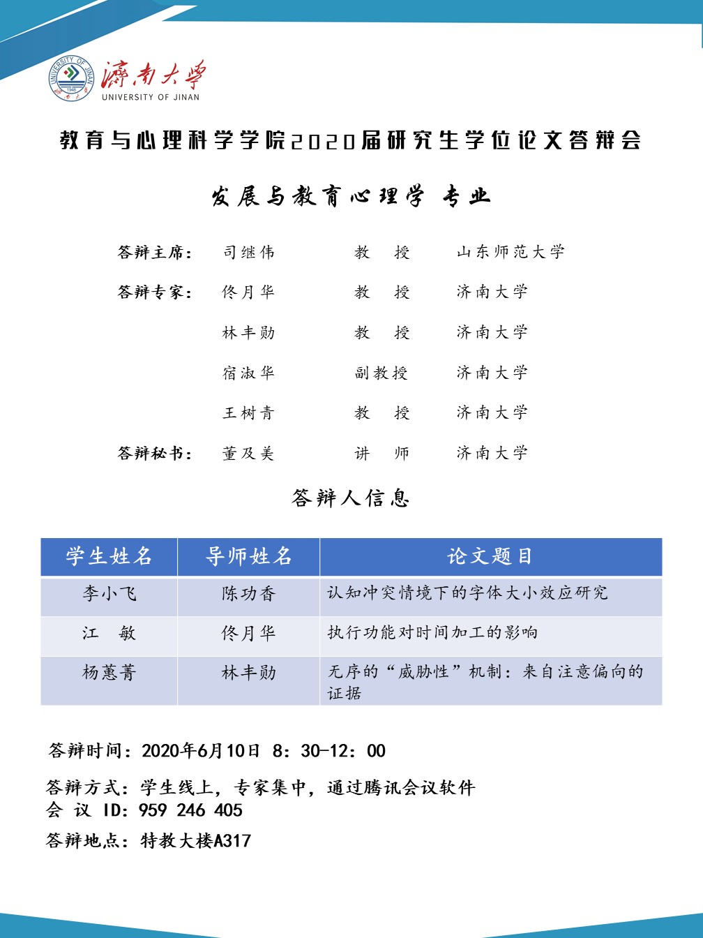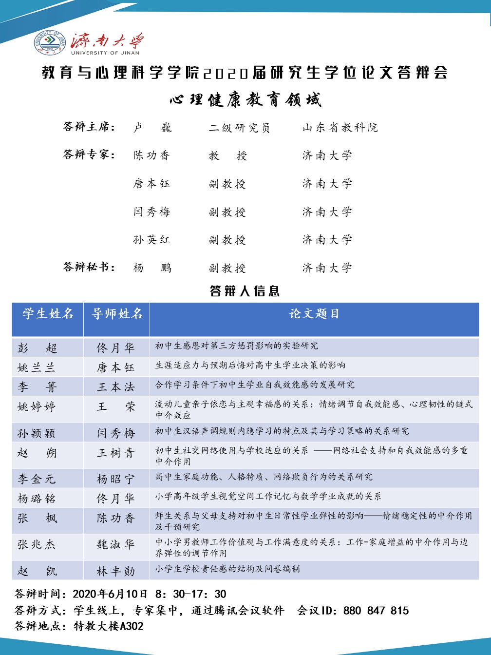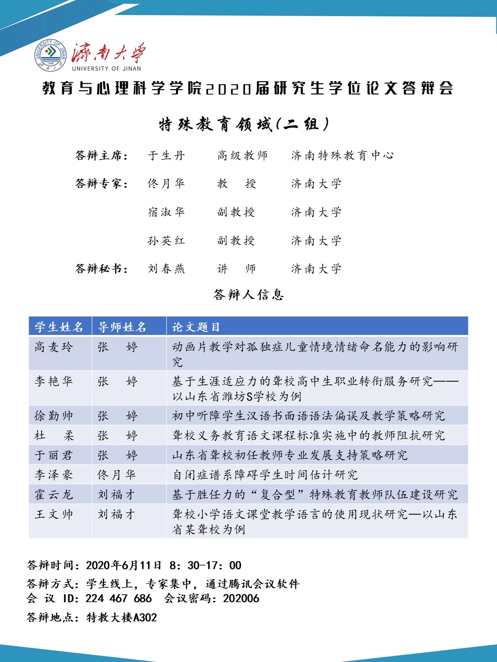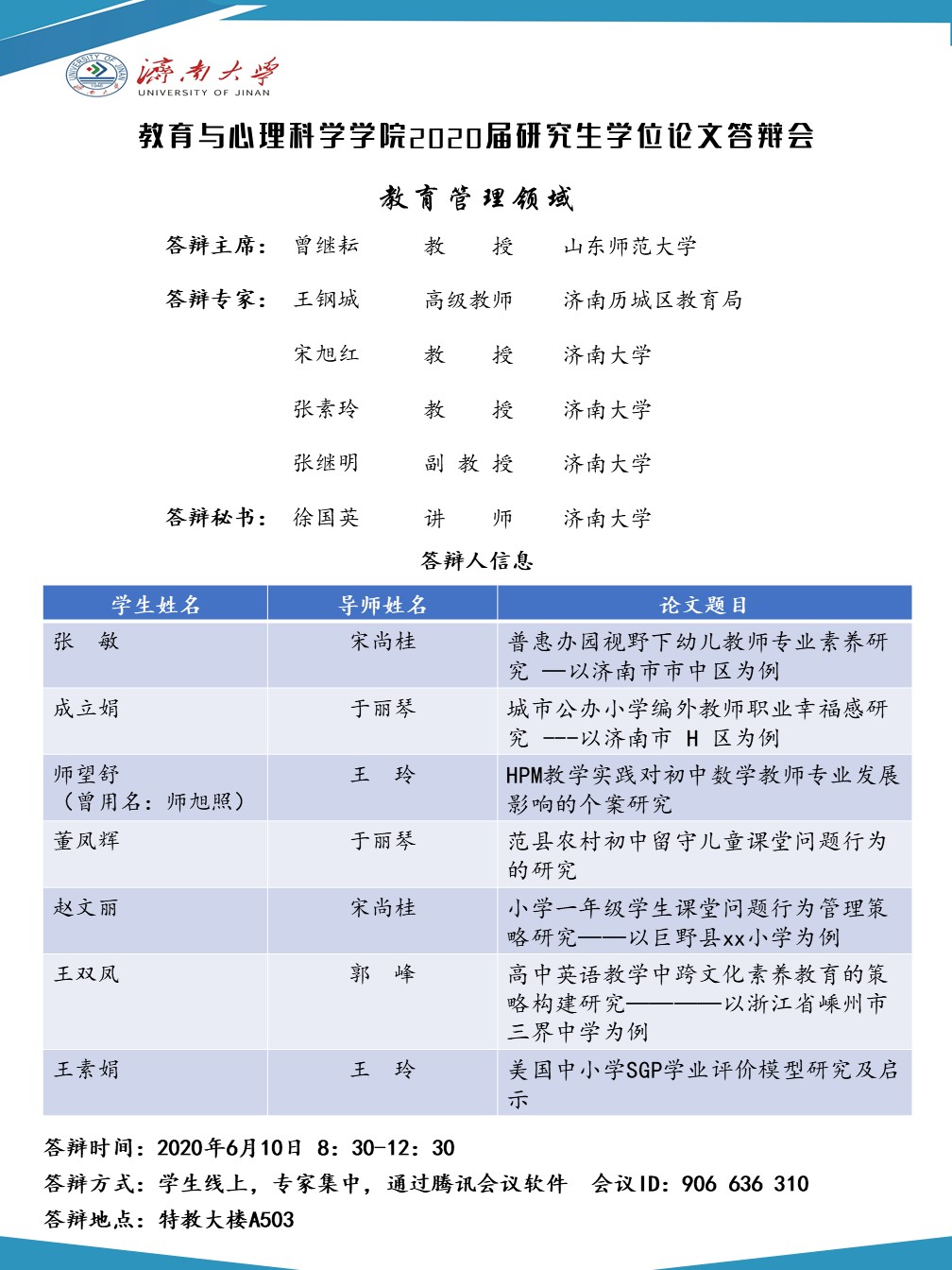 电竞比分网 2020届研究生答辩安排