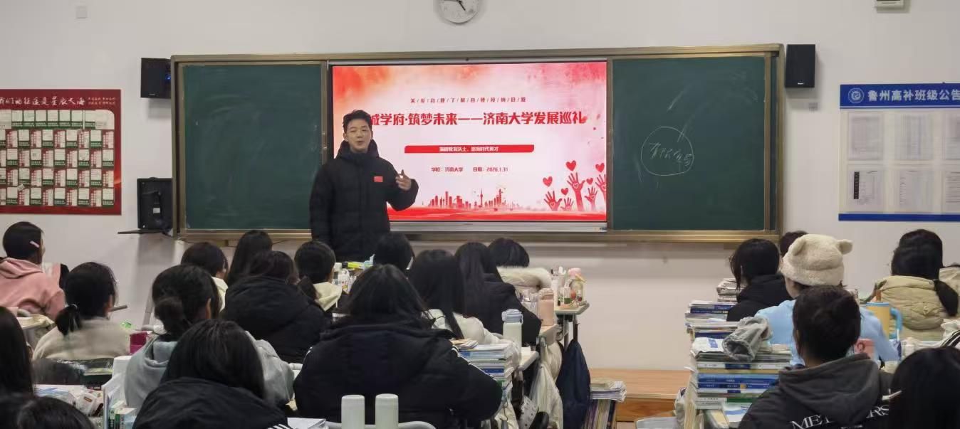 特教2502段光泽重返鲁州高考补习学校,系统梳理我校学科优势、招生政策及校园文化,结合自身备考与求学经历制作PPT,通过进班分享等形式,详细解读招生分数线、专业设置、就业前景等核心信息,用真实案例介绍学术氛围与大学生活,耐心解答备考规划、专业选择等疑问。让学弟学妹明确了努力方向,对济南大学的优势专业产生浓厚兴趣。