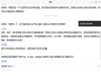 此外,袁杰博士还与同学们进行了线上互动,对大家提出的问题一一做出详细解答并再度鼓励同学们要勇于直面挫折与困境,始终保持积极进取的心态,必将“守得云开见月明”。会议最后,袁杰博士与为文静老师表达了对同学们殷切的期盼与祝福,线上会议圆满结束