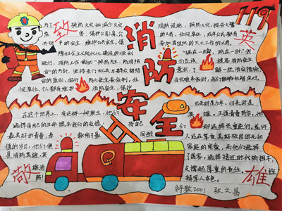 本次活动类型分为征文和手抄报作品两类,并通过线下征集方式进行。活动准备阶段,本次活动负责人通过邮箱、公众号平台、新生群等多种方式和渠道向同学们宣传作品征集活动,更好地激发了同学们参与活动的积极性。活动开始后,志愿者们鼓励同学们从不同的视角致敬英雄,宣传消防知识。同学们踊跃投稿,大批具有新意的优秀作品涌现。其中,张文昌同学的手抄报以独特的创意致敬英雄,宣传消防安全知识;辛纪元同学以细腻的文笔赞扬了火光中的逆行者;其他同学也以自己的理解和认识对消防安全知识进行了宣传。同学们通过优秀的作品,体现了他们对英雄浓浓的敬意,弘扬了消防安全精神。活动结束后,志愿者们在郑重讨论后评选出很多优秀作品,并将评审结果通过公众号展示。本次活动进行地井然有序,并在大家的积极参与和配合下取得了圆满的成功。