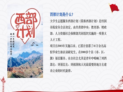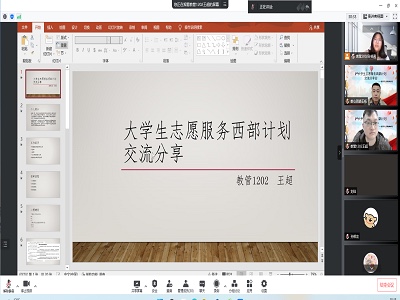 历来重视以“奉献、友爱、互助、进步”的志愿服务精神为引领,以专业特色为基础,深度融合推进志愿服务西部计划工作。教心学子连续多年参与西部计划,为新疆、贵州等多地贡献青春力量。举办本次交流会,帮助应届毕业生增进对西部计划的全面认识,同时激励低年级学生切实做好职业生涯规划,立志将青春奉献给祖国建设伟大事业,让生命在人民需要的地方焕发绚丽光彩。