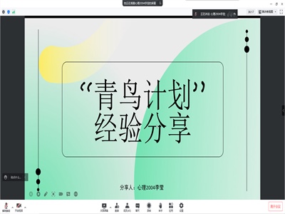 通过线上会议的形式举办“青鸟计划”社会实践分享交流会。本次活动由参与寒假社会实践“青鸟计划”的优秀学生代表担任主讲。