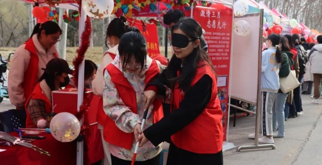 依托心泉青年志愿者协会,发挥学生的专业技能优势,在现场开展盲杖体验、手语基础教学、漂流瓶传情和心理投射量表测验等特色活动,帮助学校师生了解心理学知识,感受视听障碍人士的感官世界,积极倡导对特殊人士群体的呵护与关爱。